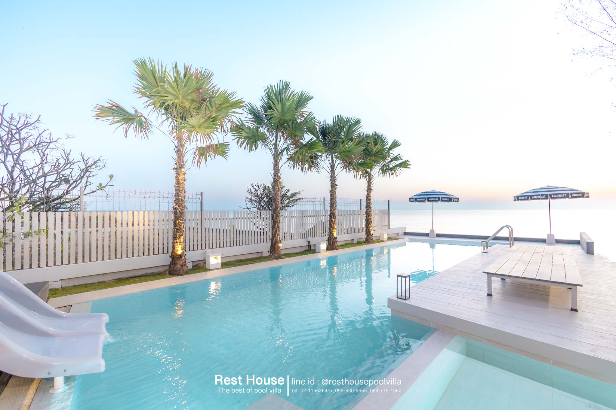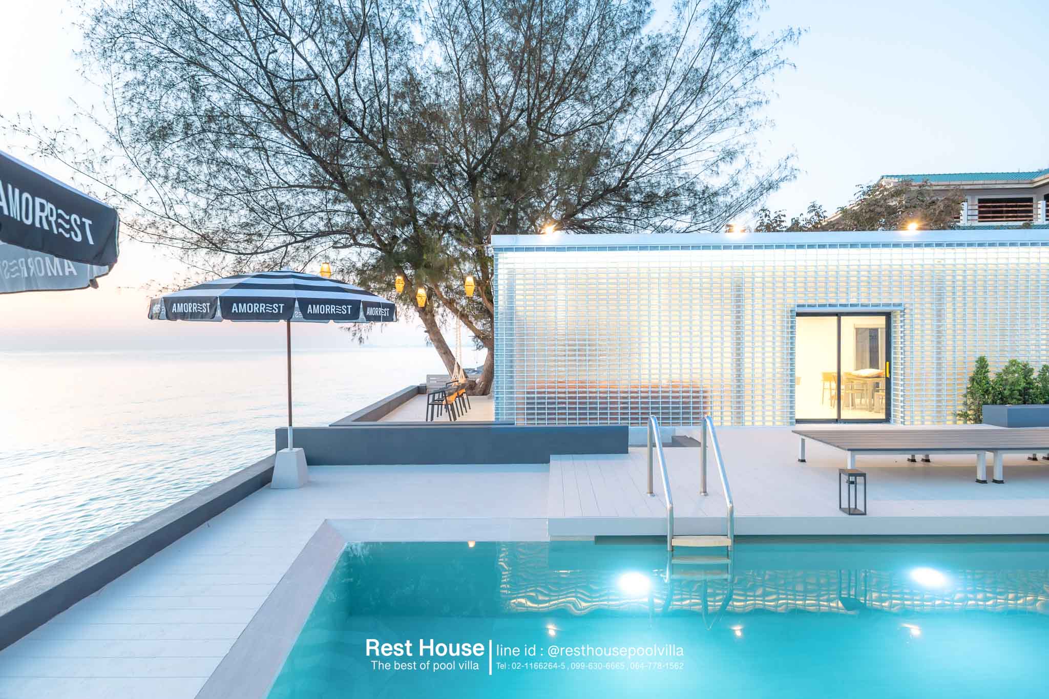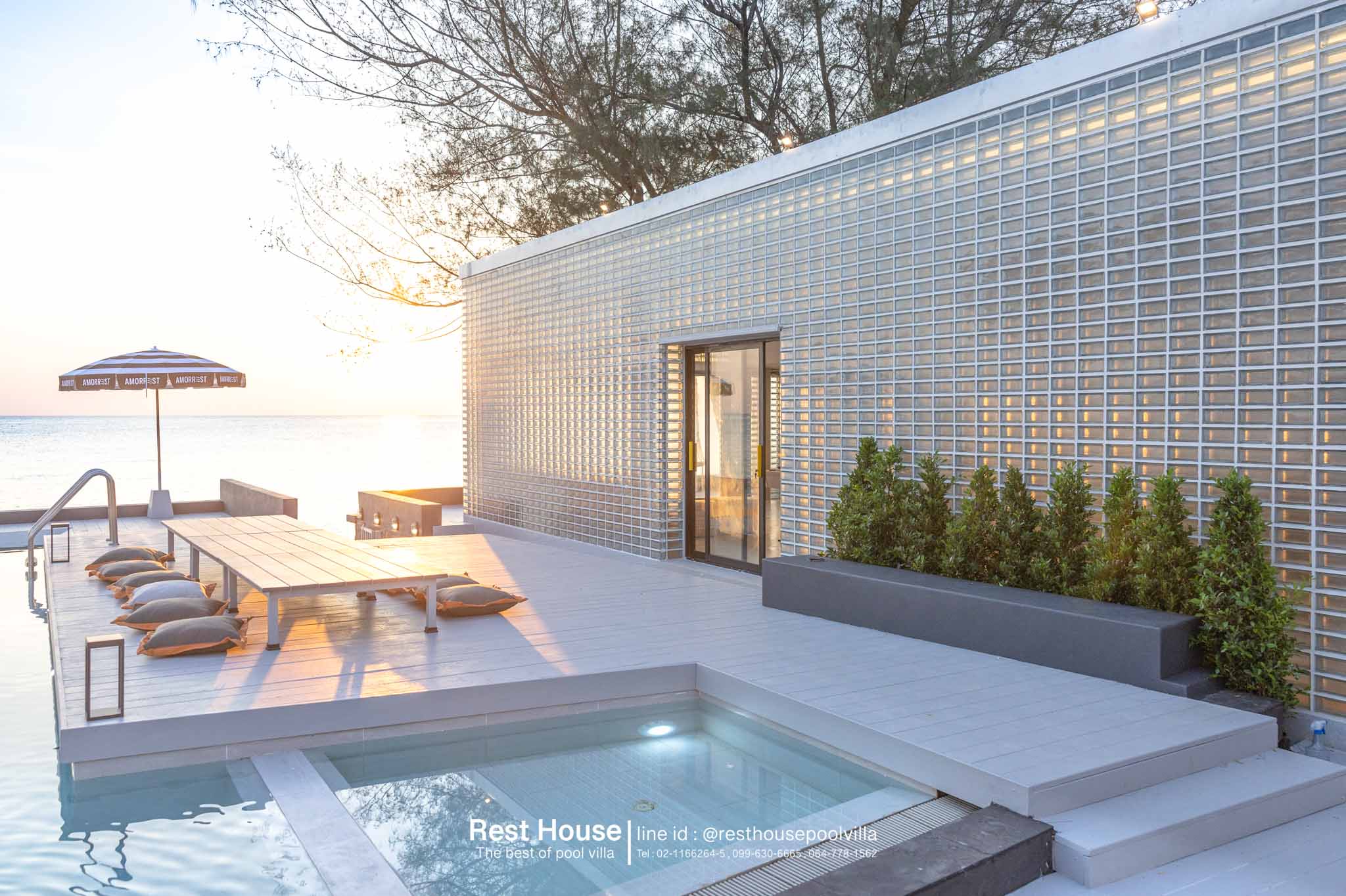 Amorrest Beachfront Villa คือพูลวิลล่าหัวหินติดทะเล สไตล์มินิมอล โทนสีขาว ที่ออกแบบมาเพื่อตอบโจทย์