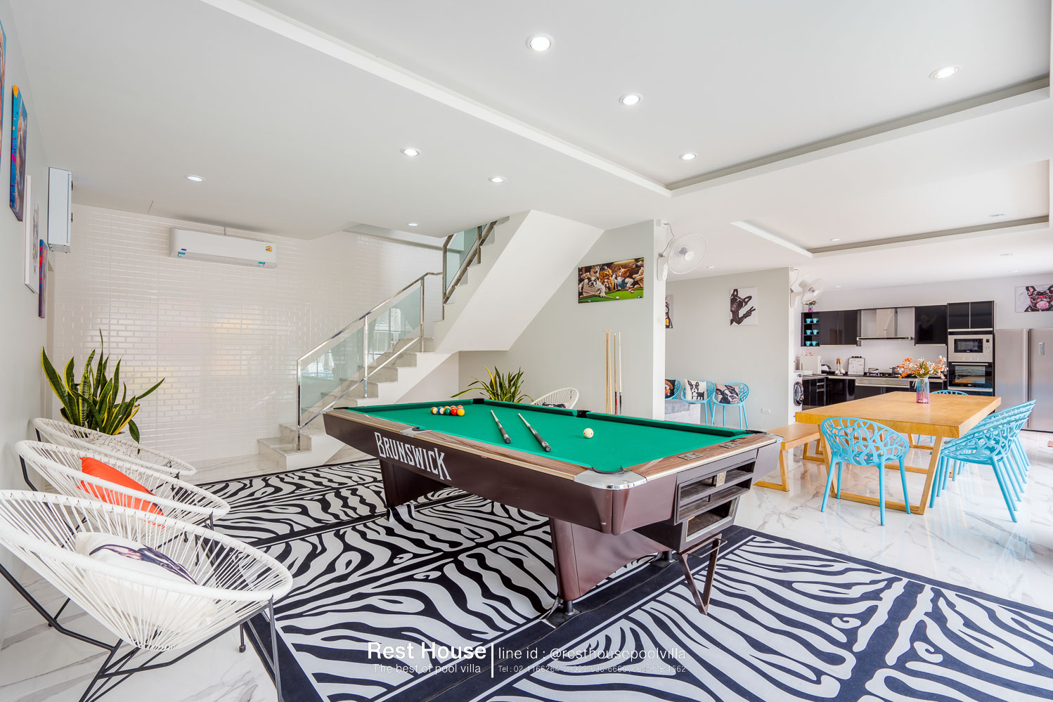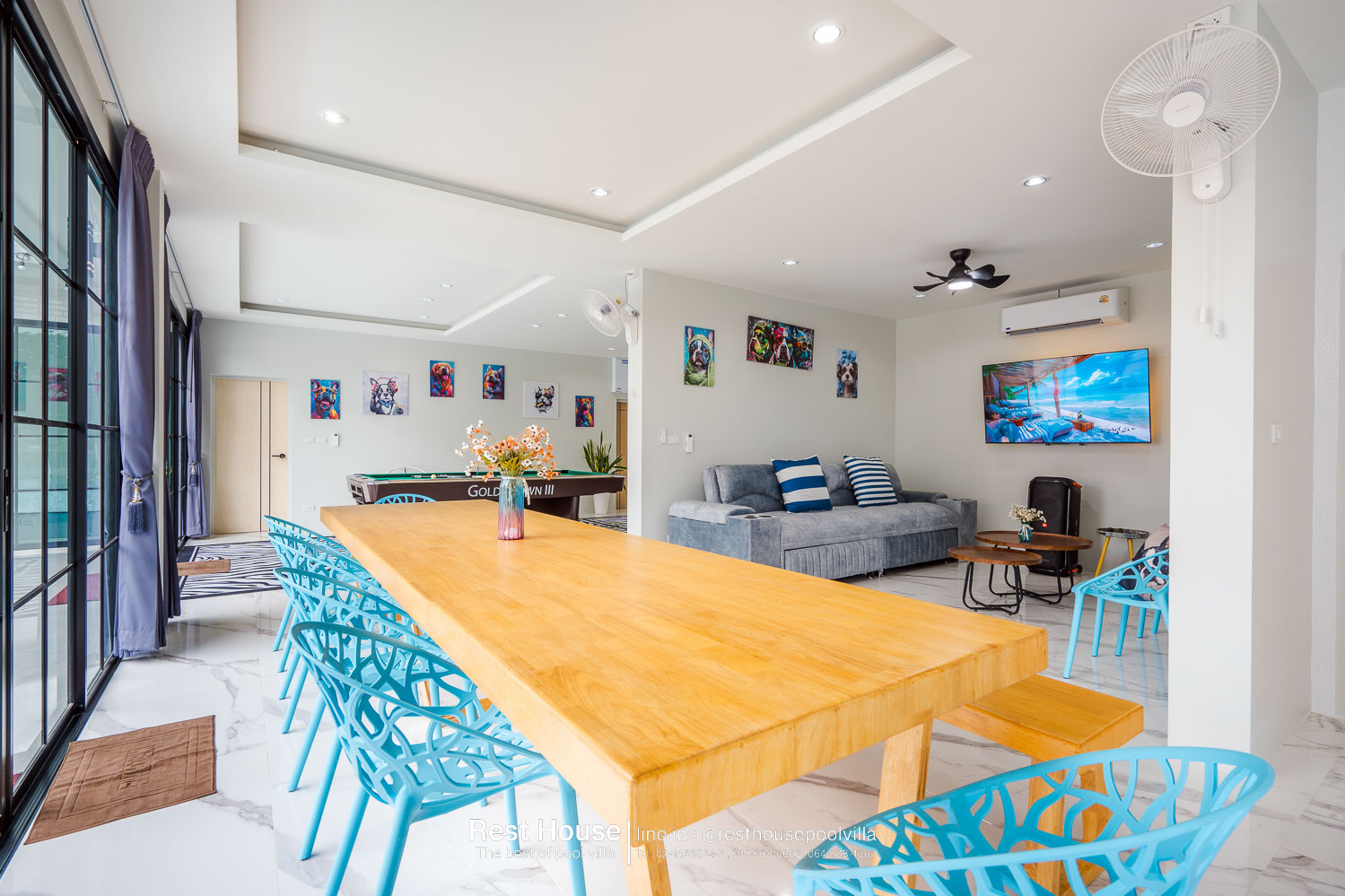 ห้องนอน 2 : ห้องริมโต๊ะพูล เตียง 6 ฟุต 2 เตียง