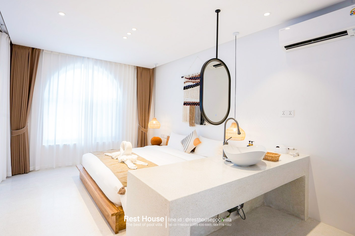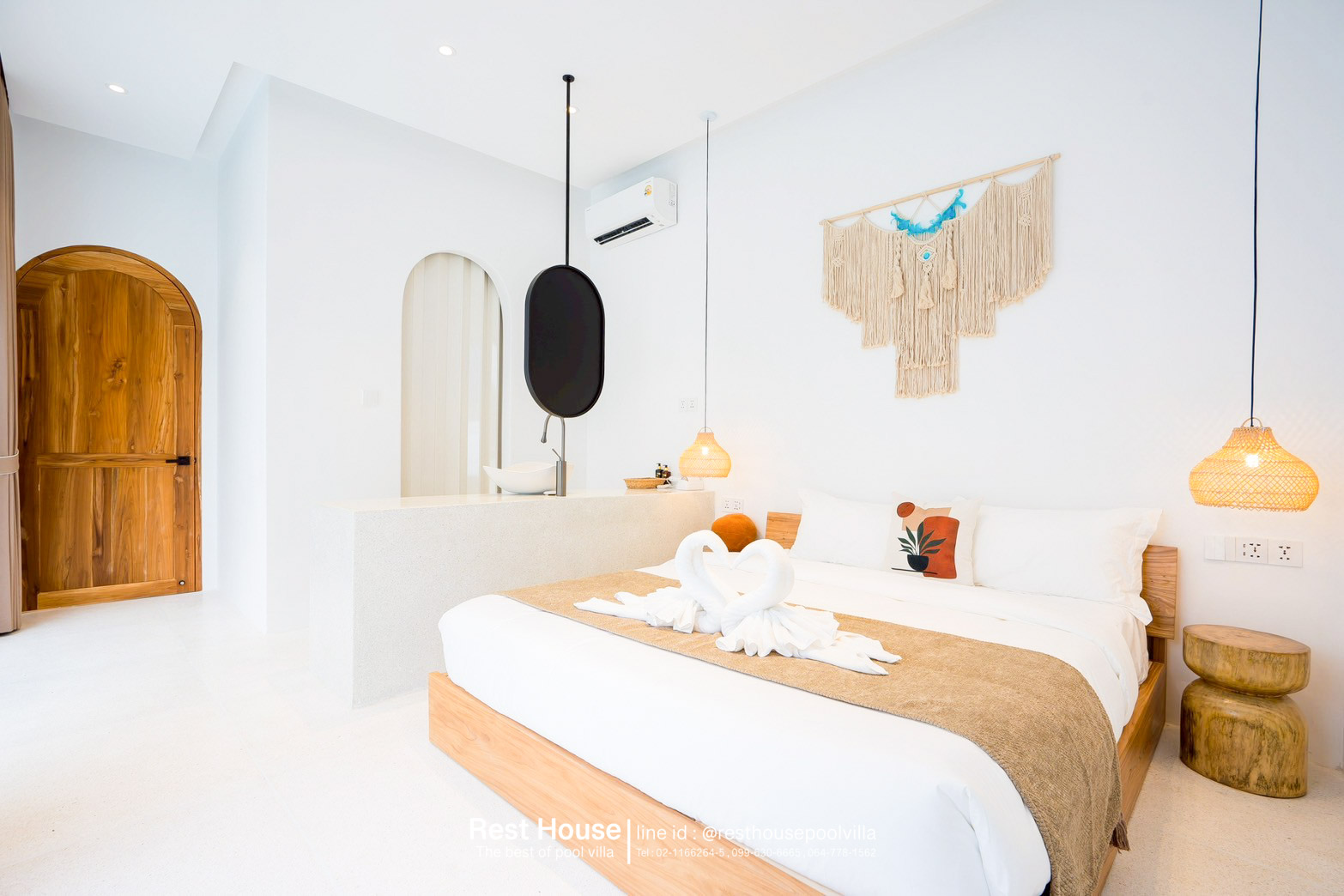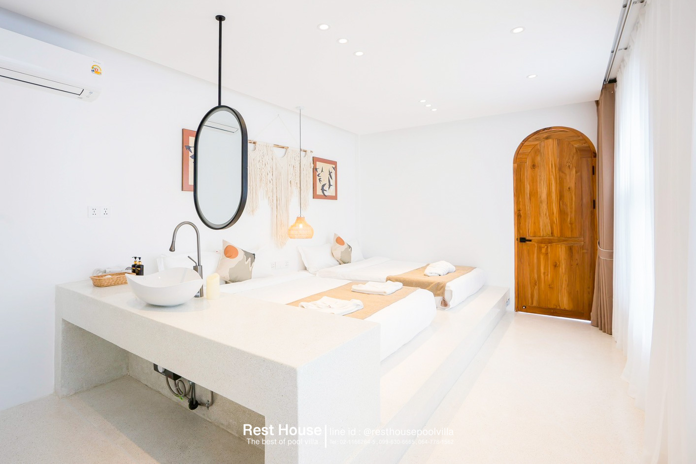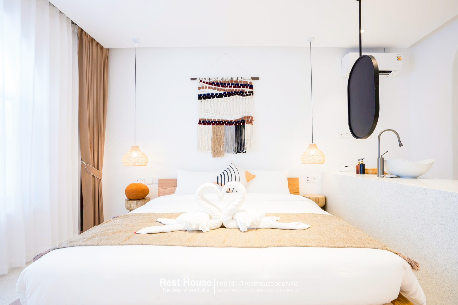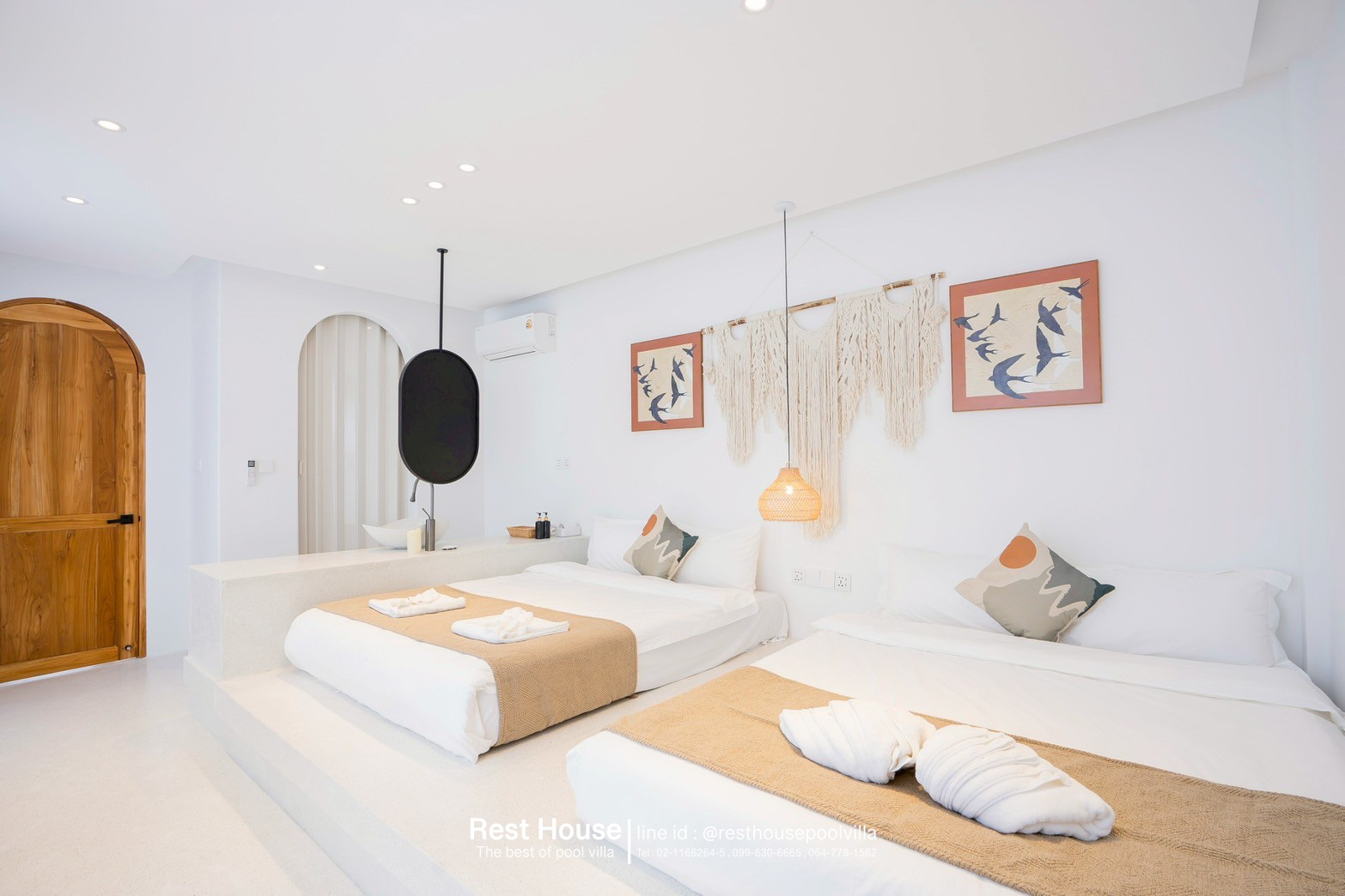 ห้องที่ 1 อยู่ชั้น 1 มีเตียง 6 ฟุต 1 เตียง (มีห้องน้ำในตัว)ห้องที่ 2 อยู่ชั้น 2 มีเตียง 6 ฟุต 1 เตียง (มีห้องน้ำในตัว)