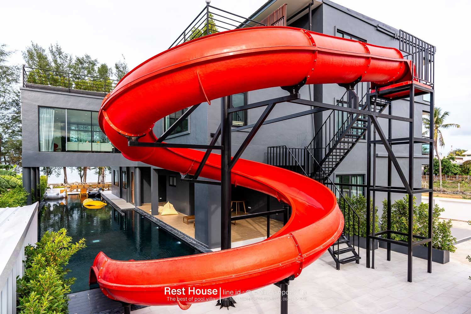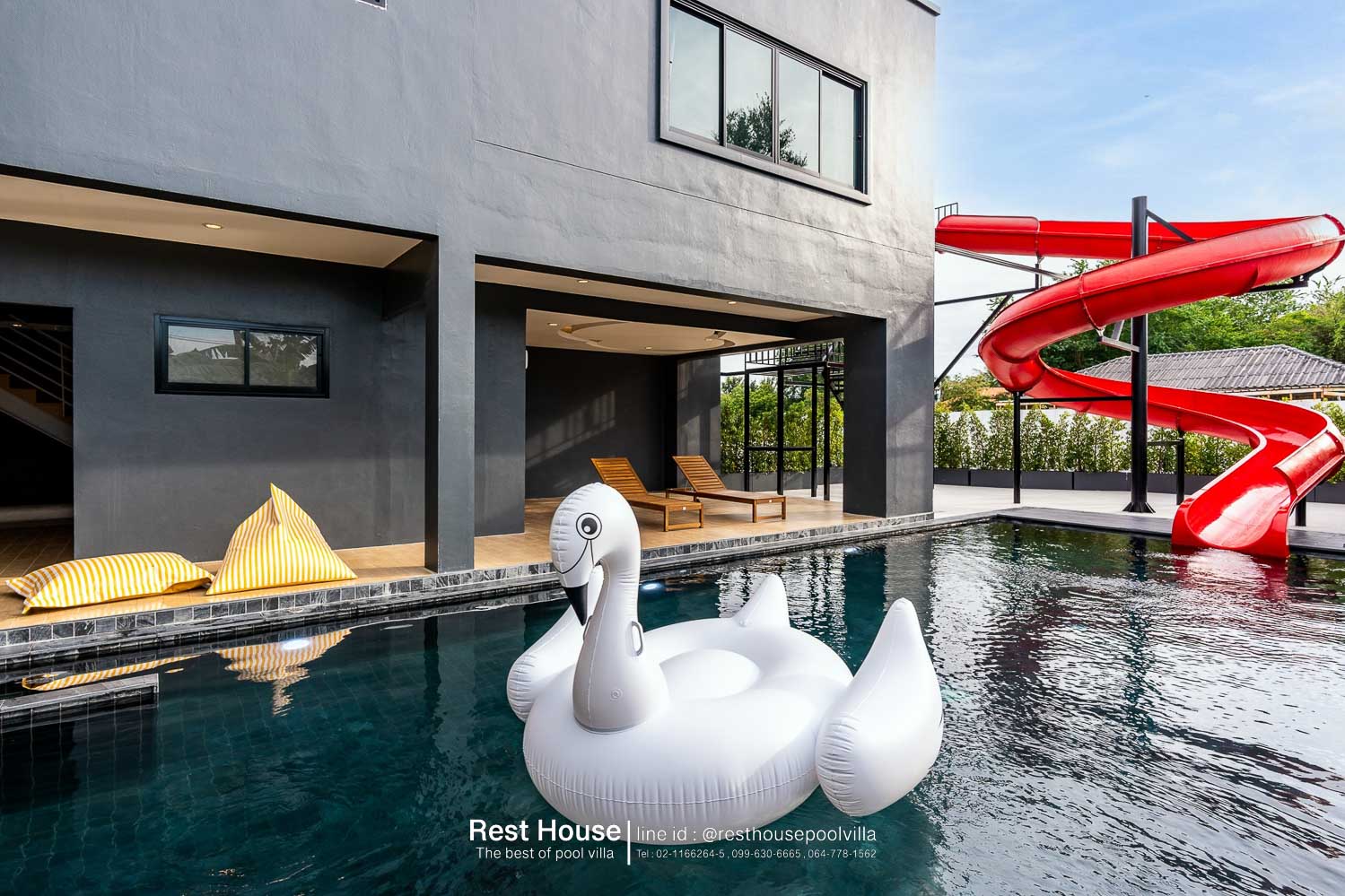 (1) ริมสระว่ายน้ำตรงสไลเดอร์